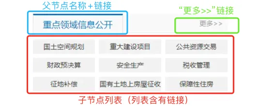 1、从图示和静态代码我们可以得知实现包含的内容有:更多链接、父节点名称+链接、文章信息列表