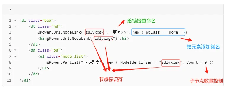 @Power.Partial("节点列表", new { NodeIdentifier = "zdlyxxgk", Count = 9 })